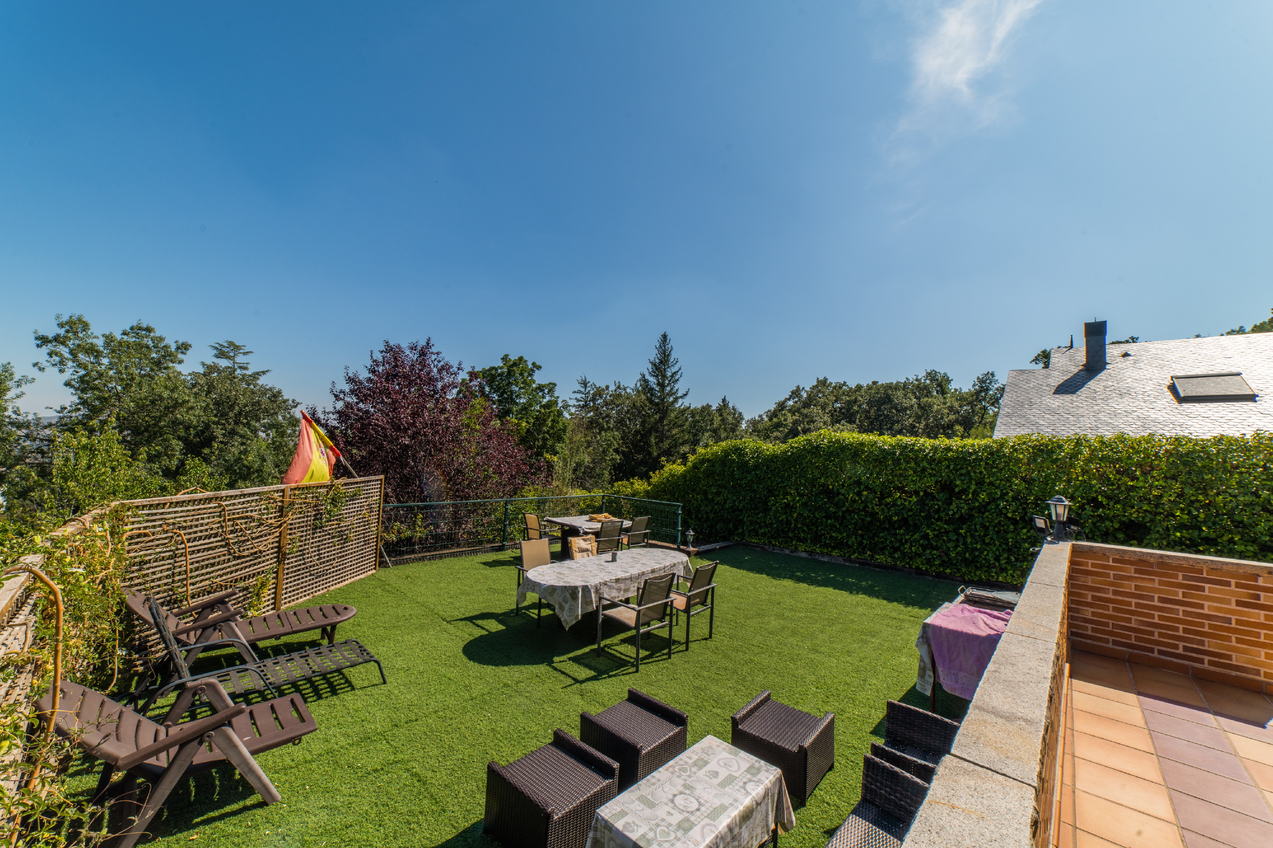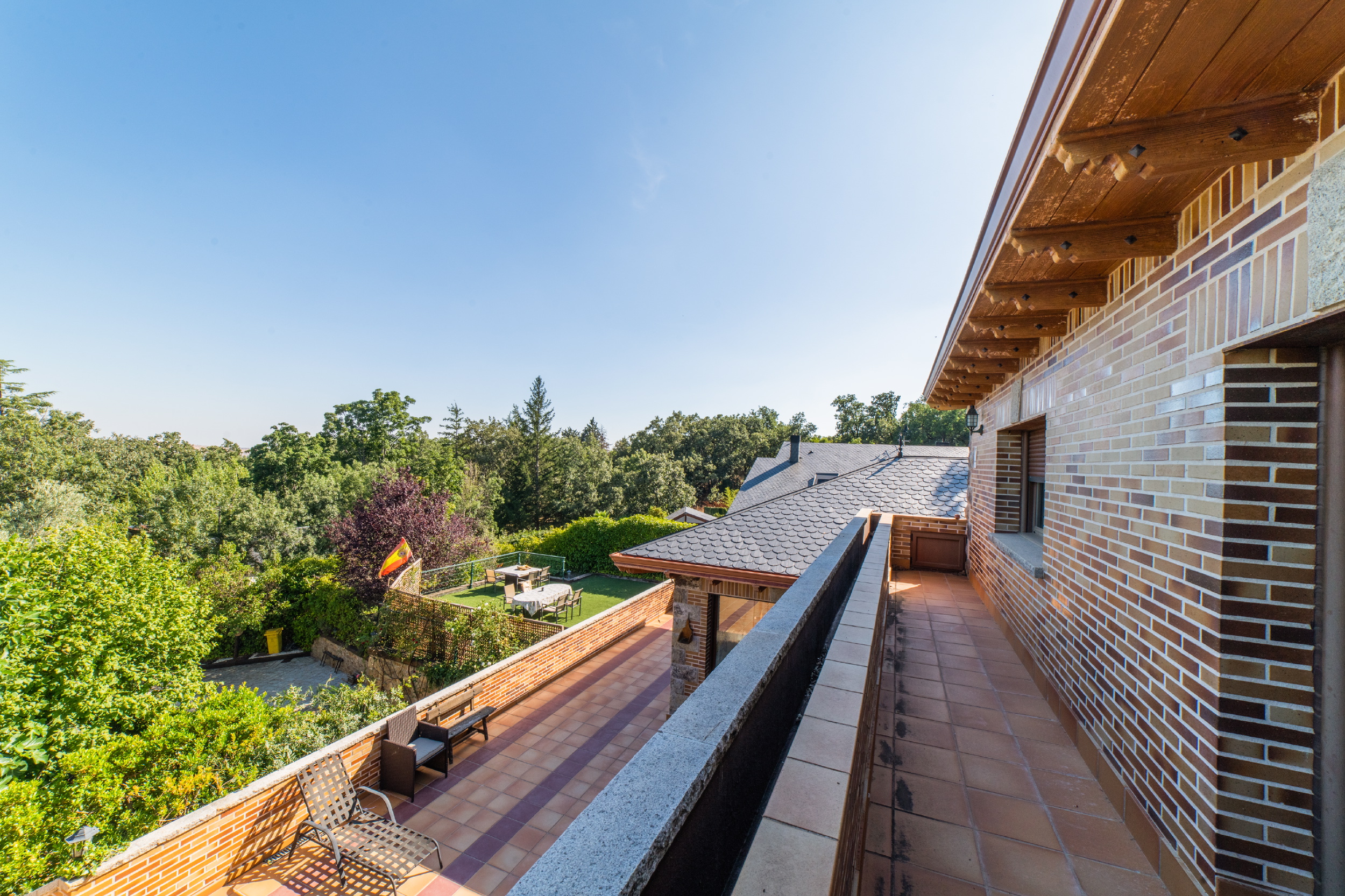 Este chalet, ubicado en el corazón de la sierra madrileña, ofrece unas vistas incomparables, rodeado de naturaleza, silencio, y la autenticidad de Miraflores de la Sierra, un pueblo que conserva su carácter típico y encanto especial.