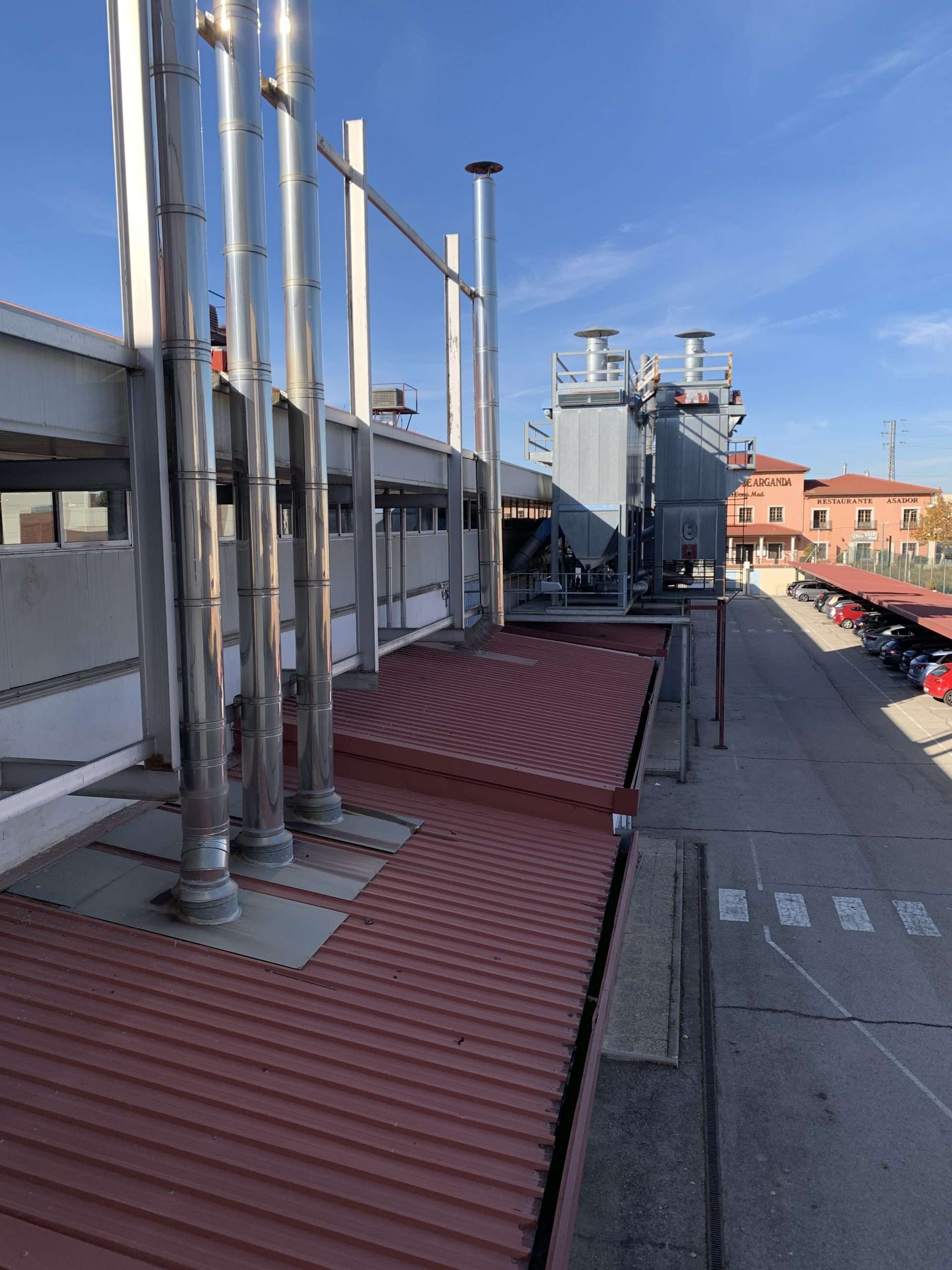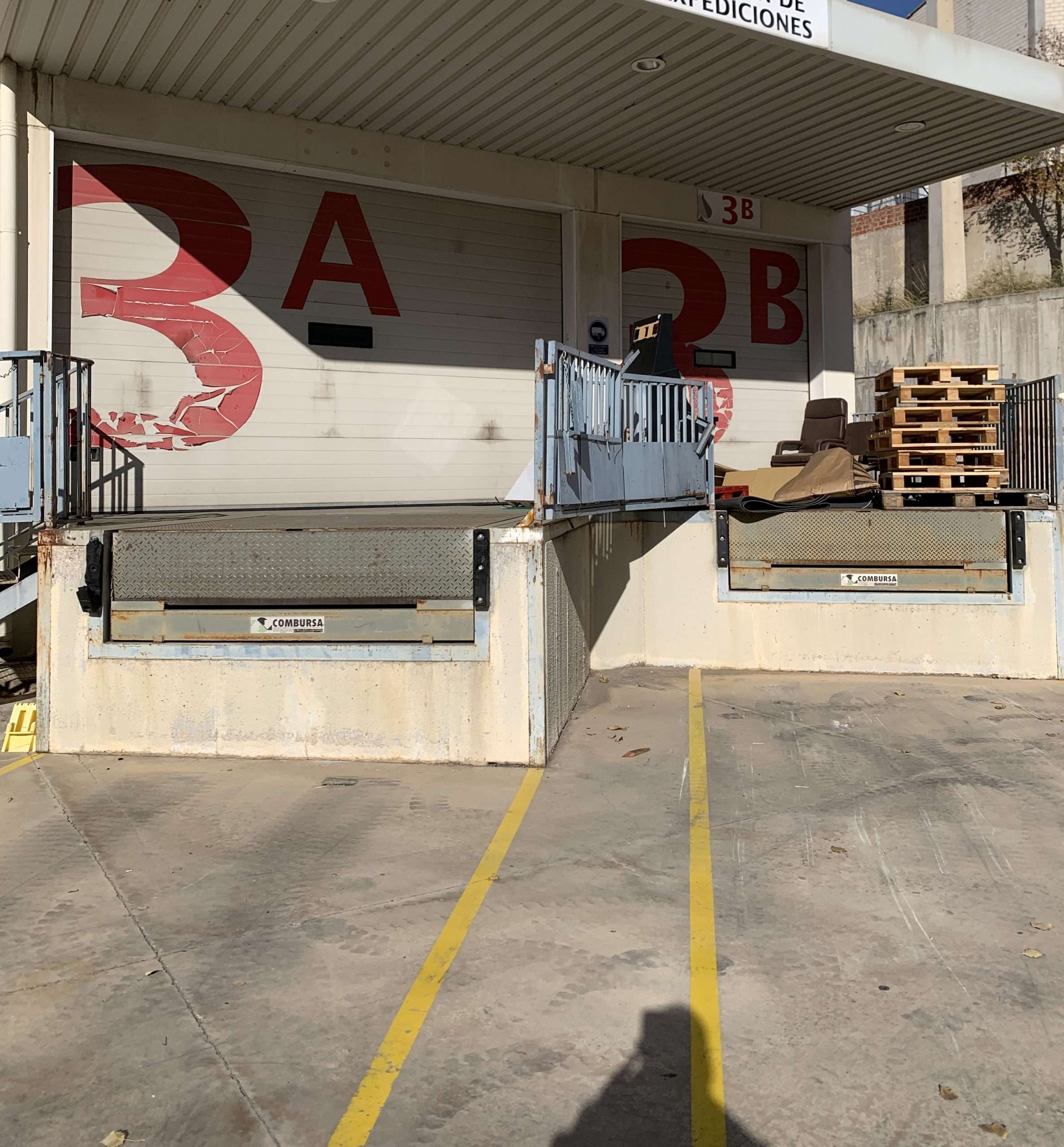 . Tres montacargas, dos de 3.500 kg. y uno de 5.000 kg. Un portón delantero, otro trasero, tres laterales y uno como muelle de carga – descarga. Muelle de carga (1). Rampas de descarga para furgonetas. Centro de transformación propio. Instalación eléctrica 380 V. Silo de aspiración
