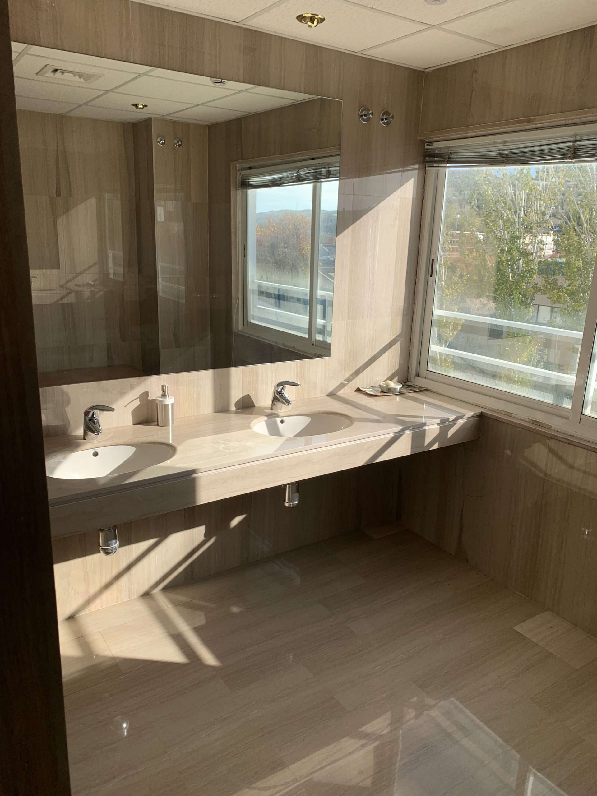 . Vestuarios masculinos/femeninos. Aseos en todas las plantas. Cafetería. Amplio Comedor / Office. Calefacción en planta baja y climatización frio/calor en la primera planta. Parking subterráneo con BIES. Ascensores